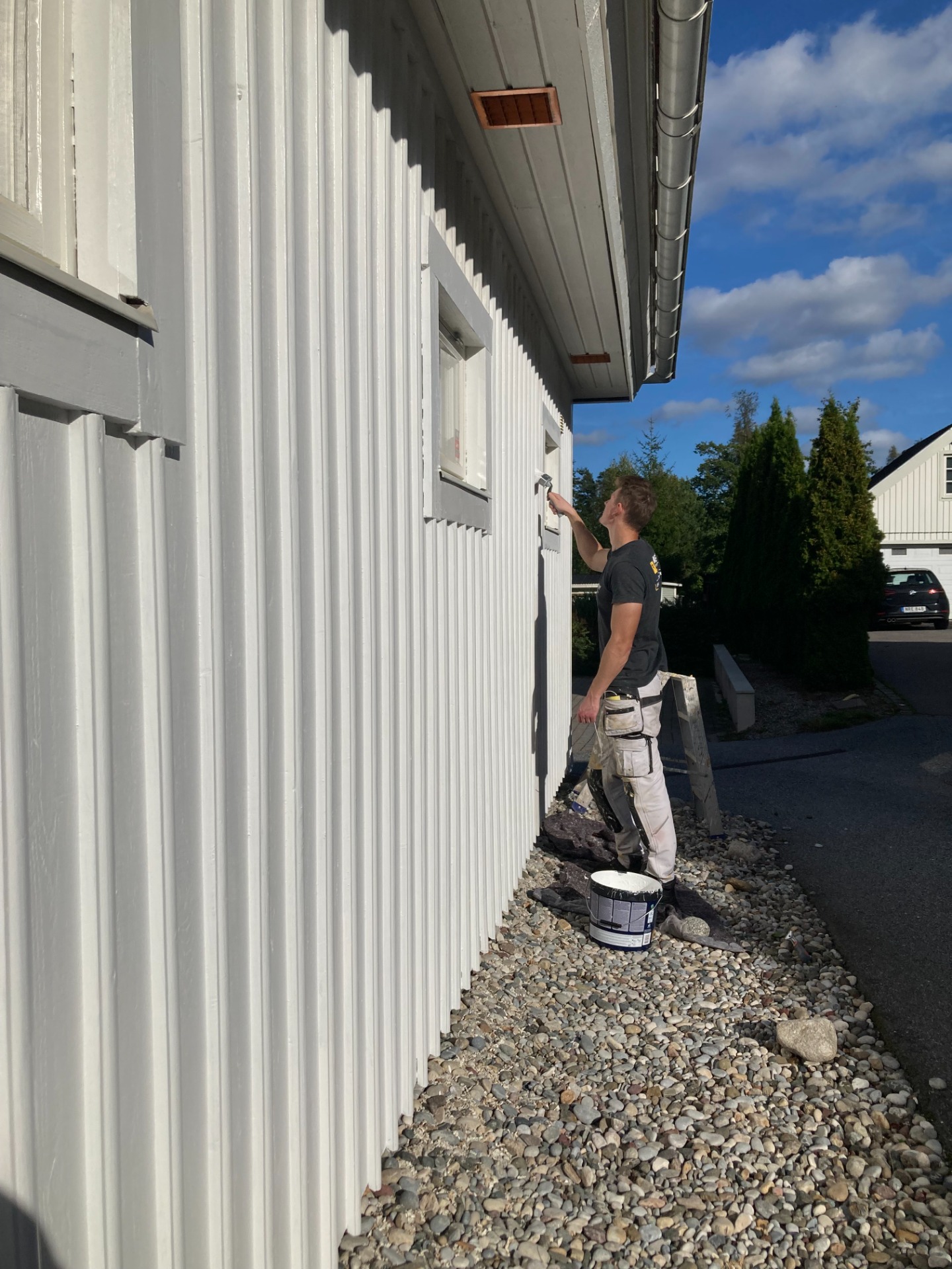 Vi använder beprövade metoder och väderbeständiga färgsystem anpassade för vårt nordiska klimat, vilket ger ett långvarigt skydd och ett snyggt resultat. Rätt förarbete är avgörande för hållbarheten, därför lägger vi stor vikt vid rengöring, skrapning, grundning och eventuell lagning innan färgen kommer på. Om fasaden skulle vara i så dåligt skick att den behöver bytas, är vi även behjälpliga där.